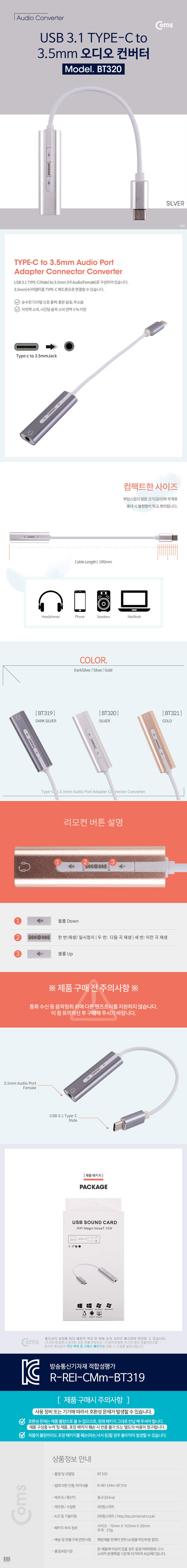 [287604]Coms(ÄĽº) Type C ¿Àµð¿À(7.1) ÄÁ¹öÅÍ/3.5 - ST ÄÉÀ̺íÇü, Metal/Silver [BT320]