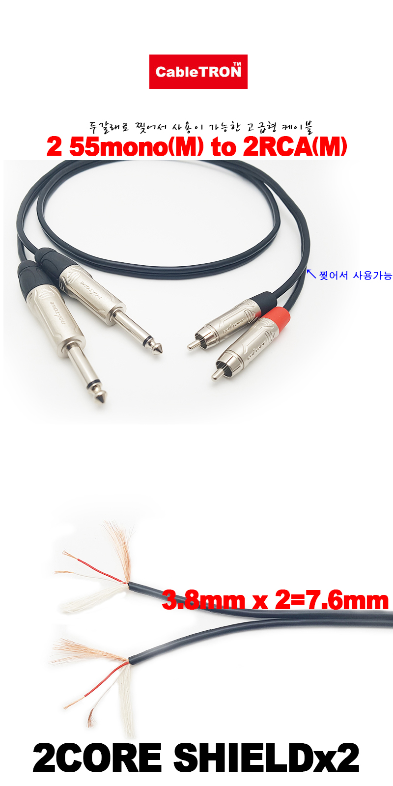 [170403]CableTRON(ÄÉÀÌºíÆ®·Ð) 2 55¸ð³ë(¼ö) to 2RCA(¼ö) ÄÉÀ̺í 7¹ÌÅÍ(7m) [CCT-HRH]