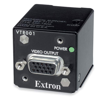 The Extron VTT001 Twisted Pair Transmitters work together with the VTR001 Twisted Pair Receivers to create a cost-effective and high performance system for sending high resolution VGA / RGBHV signals 300 feet (90 meters) or more over any CAT 5, 5e, or 6 UTP cable or Extron Enhanced Skew-Free¢â A/V UTP cable. Compatible with RGBHV, RGBS, RGsB signals at resolutions up to 1600 x 1200, the VTT001 transmitters are perfect for boardrooms, large training facilities, or other applications that require a compact, economical solution or sending computer-video signals long distances over UTP cable.