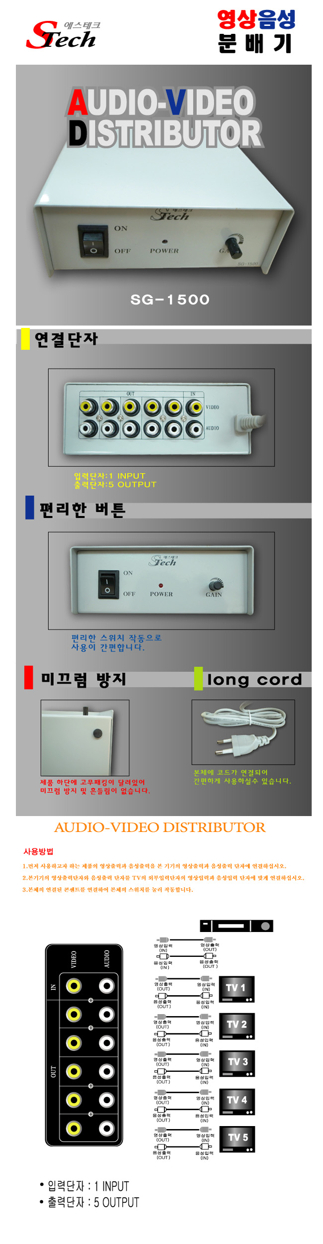 3RCA (À½¼º Left, À½¼º Right, ¿µ»óÀ¸·Î 3°³ ´ÜÀÚ) / µÎ²² : À½¼º(4mm), ¿µ»ó(5mm)