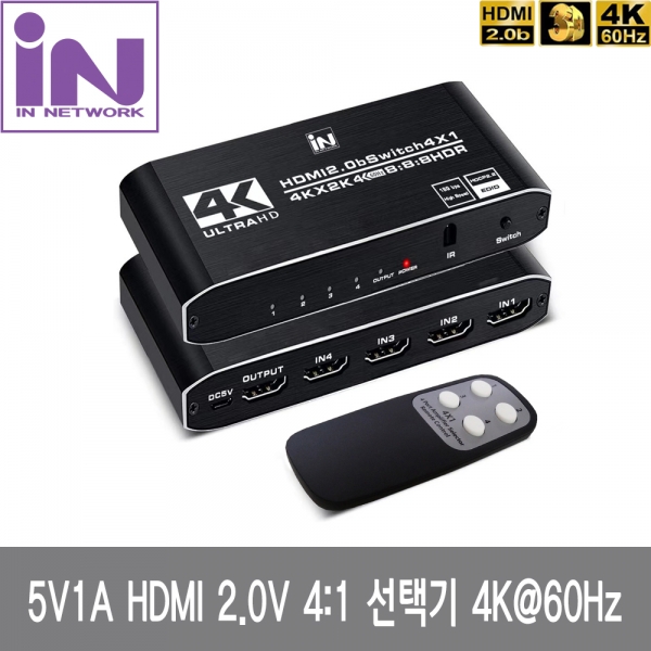 [ǰÀý] [311153]inNETWORK(ÀÎ³×Æ®¿÷) HDMI 2.0V 4:1 ¼±Åñâ / 5V1A [IN-20HSW41]