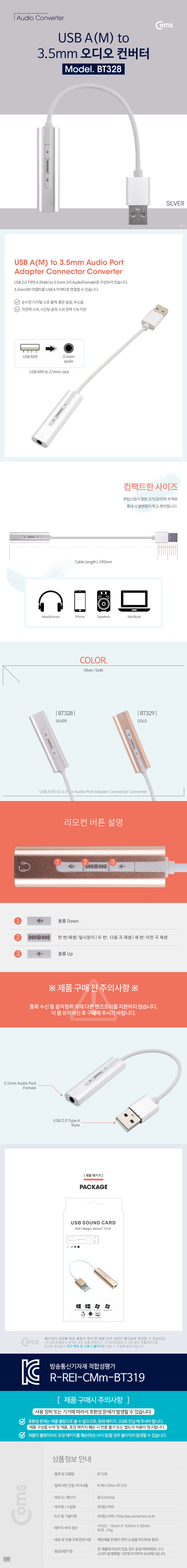 [287604]Coms(ÄĽº) Type C ¿Àµð¿À(7.1) ÄÁ¹öÅÍ/3.5 - ST ÄÉÀ̺íÇü, Metal/Silver [BT320]