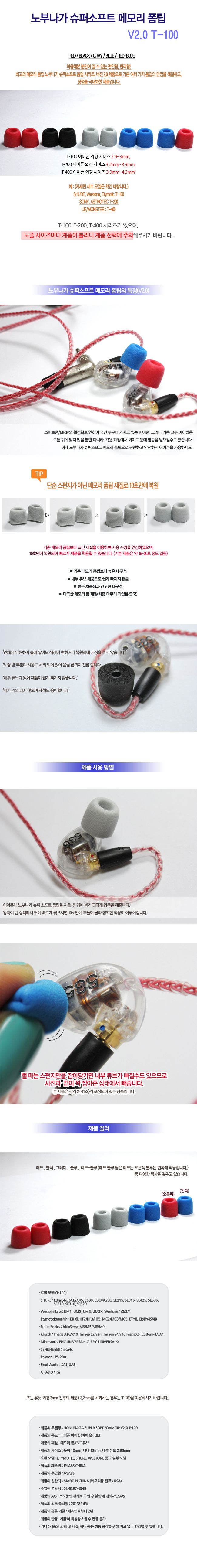 [140589]NOBUNAGA(³ëºÎ³ª°¡) ½´ÆÛ ¼ÒÇÁÆ® ¸Þ¸ð¸® ÆûÆÁ T-100 v2.0 (SHURE/ WESTONE / ETYMOTIC ȣȯ) [·¹µå/ºí·ç]