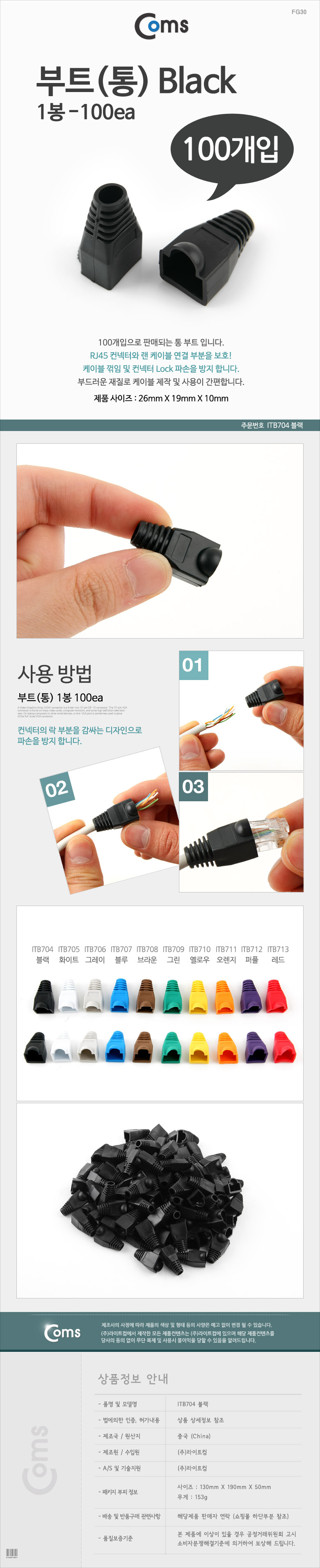 [ǰÀý][164163]Coms(ÄĽº) ºÎÆ®(Åë), 1ºÀ - 100ea / 8P8C, Black [ITB704]