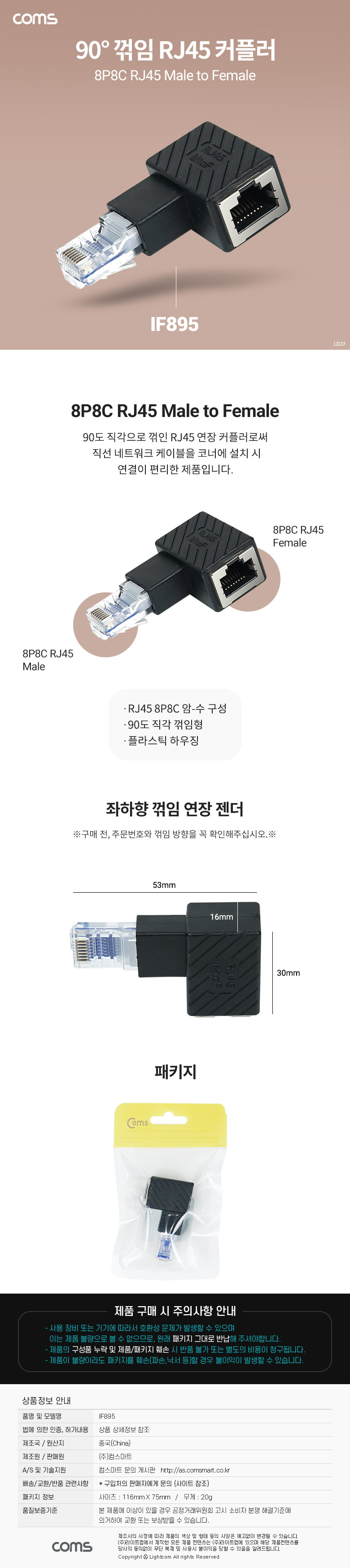| ¡á Coms(ÄĽº) RJ45 ¿¬Àå Ä¿Ç÷¯ 8P8C Male to Female, 90µµ ²ªÀÓ Á¨´õ´Â ´Ù¾çÇÑ »óǰÀÌ ÀÖ½À´Ï´Ù ¡á |