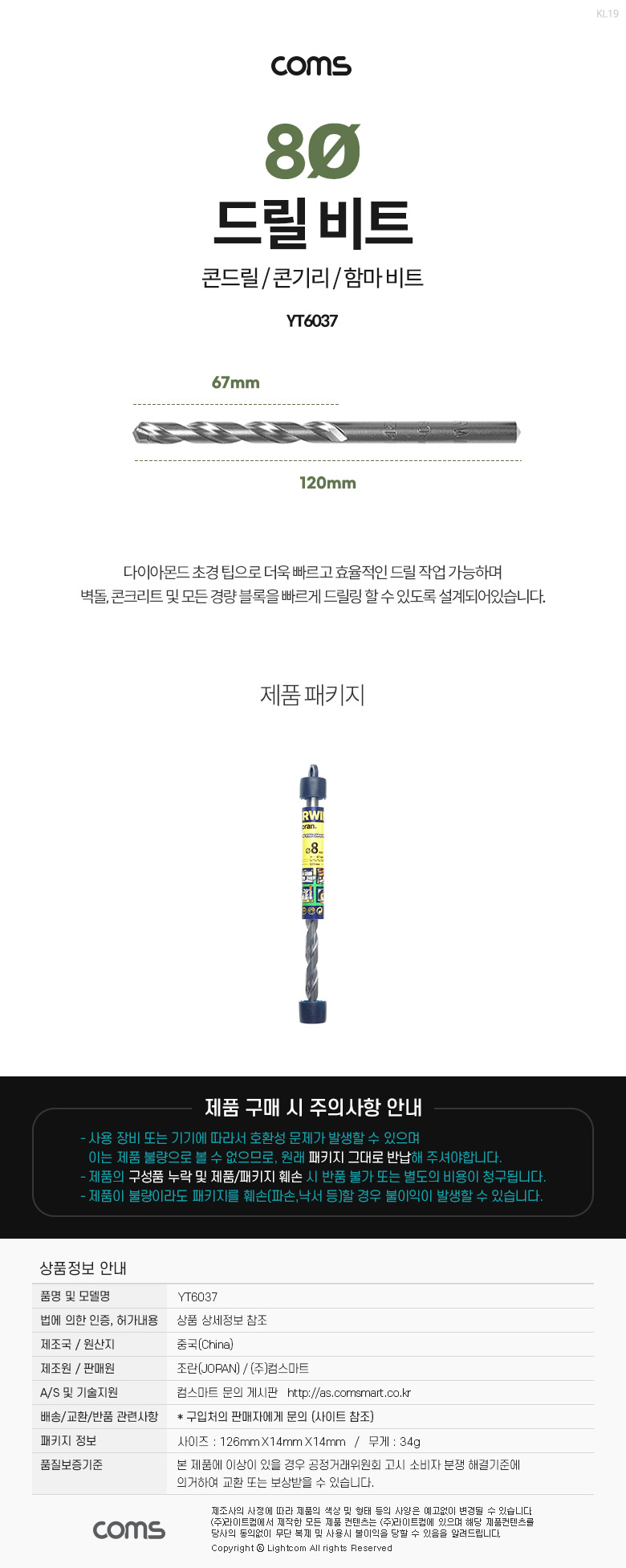 [300196]Coms(ÄĽº) Á¶¶õ(joran) µå¸± ºñÆ®, 8¨ª x 120mm, Äܱ⸮(Äܵ帱, ÇÔ¸¶ ºñÆ®), ÄÜÅ©¸®Æ® Àüµ¿µå¸± [YT6037]