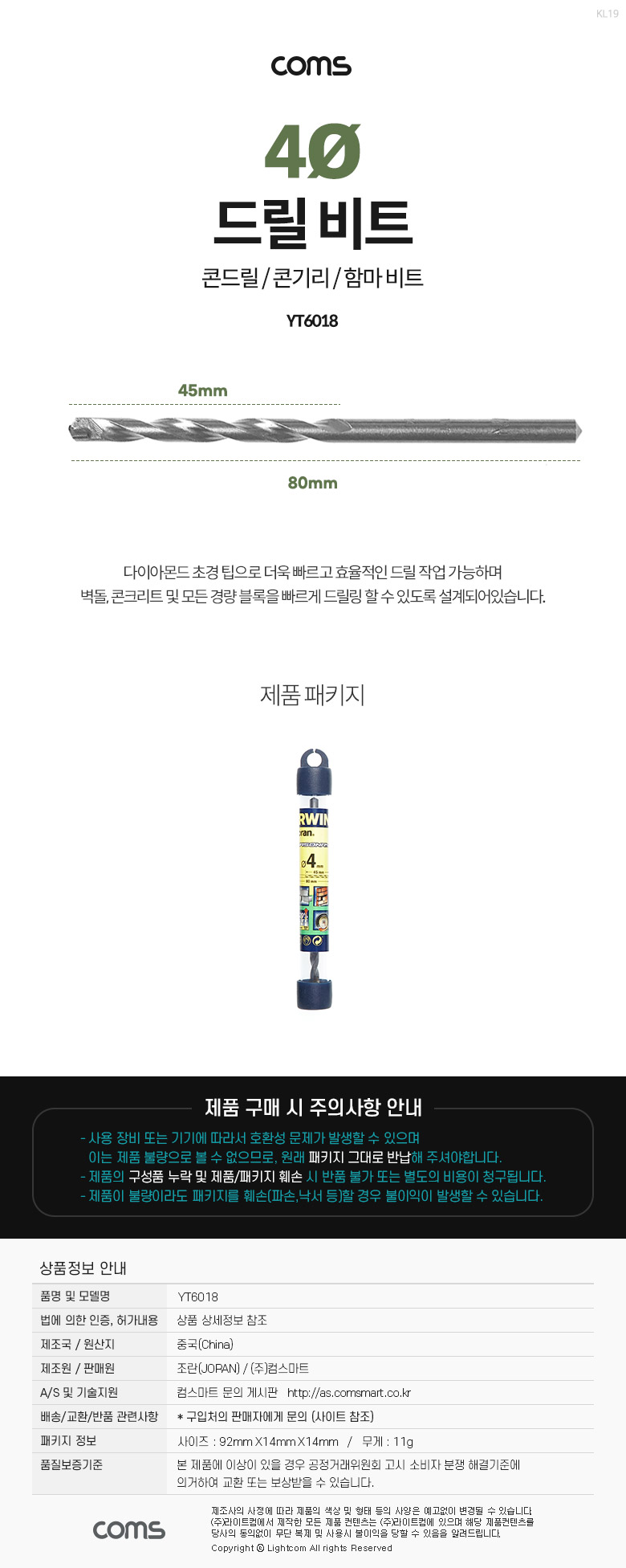 [300193]Coms(ÄĽº) Á¶¶õ(joran) µå¸± ºñÆ®, 14¨ª x 160mm, Äܱ⸮(Äܵ帱, ÇÔ¸¶ ºñÆ®), ÄÜÅ©¸®Æ® Àüµ¿µå¸± [YT6065]