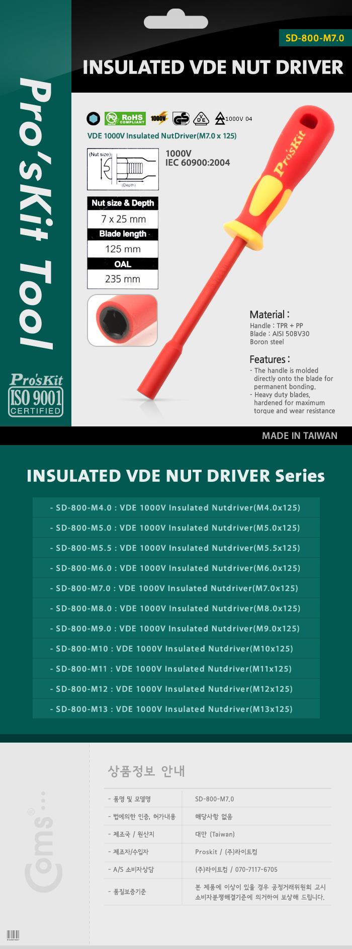 [138962]Prokit(ÇÁ·ÎŶ) ³ÊÆ® µå¶óÀ̹ö(Ãʰí¾Ð Àü±âÀÛ¾÷¿ë),»çÀÌÁî - 7.0mm [SD-800-M7.0/PK419]