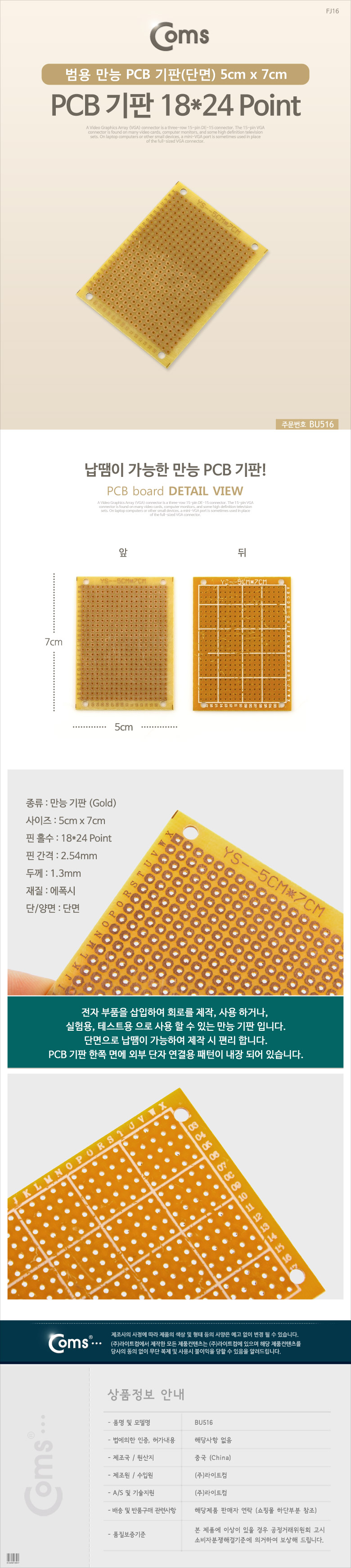 [164080]Coms(ÄĽº) PCB ±âÆÇ(gold / 35*77 Point), 10x22cm [BU519]