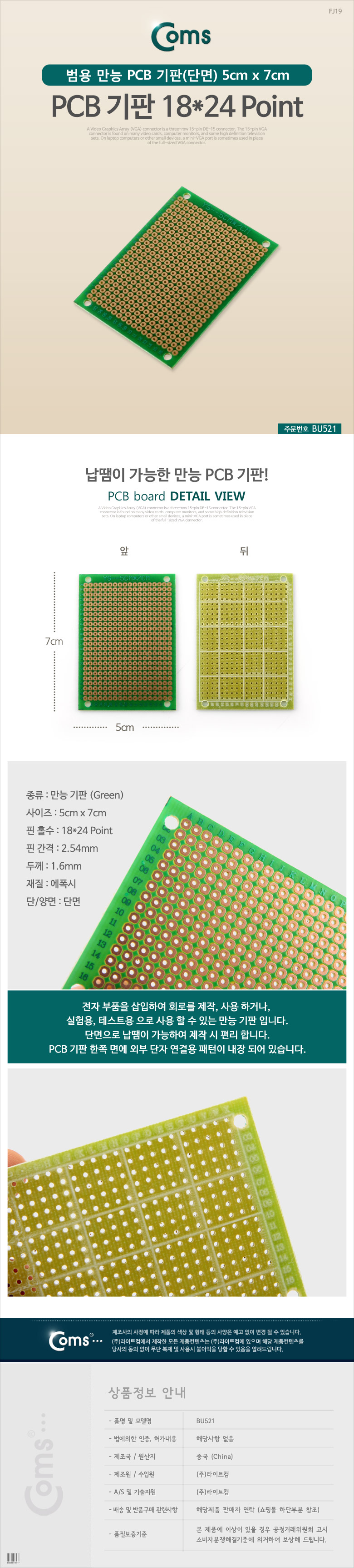 [ǰÀý][164092]Coms(ÄĽº) PCB ±âÆÇ(green / 18*24 Point), 5x7cm [BU521]