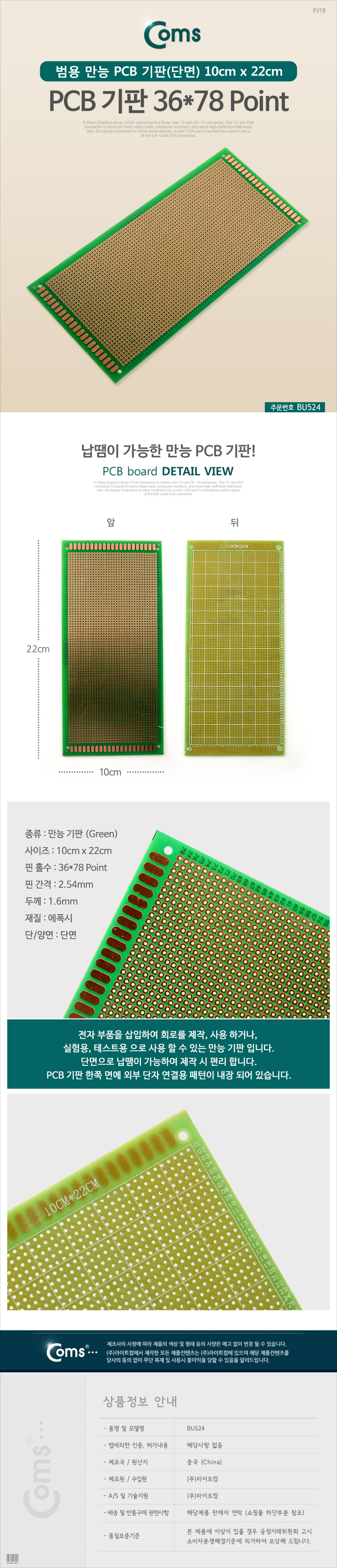 [164095]Coms(ÄĽº) PCB ±âÆÇ(green / 36*78 Point), 10x22cm [BU524]