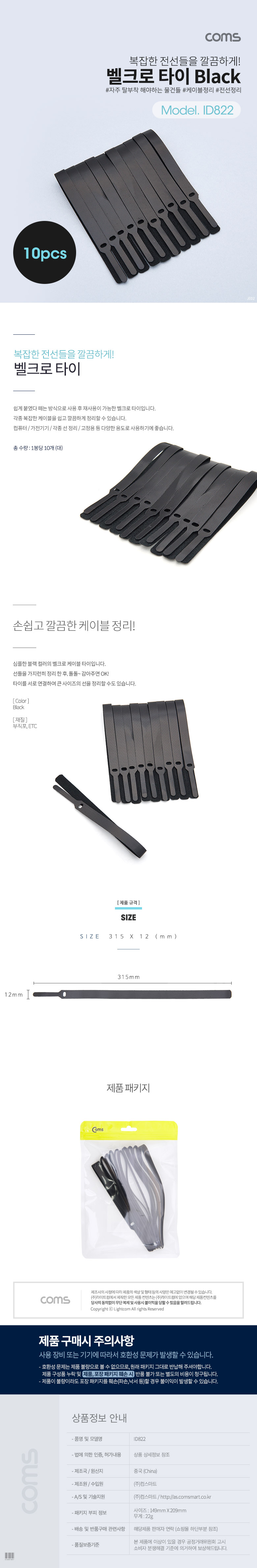 [288415]Coms(ÄĽº) º§Å©·Î ŸÀÌ 10pcs (¼Ò) / Black / ÄÉÀ̺íŸÀÌ / 120mm [ID820]