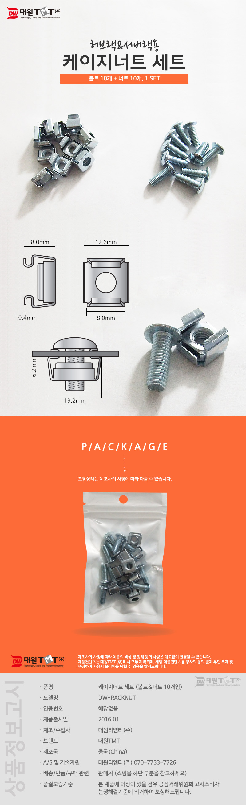 [165713]´ë¿øÆ¼¿¥Æ¼(´ë¿øTMT) Çãºê·¢&¼¹ö·¢¿ë ÄÉÀÌÁö³ÊÆ® ¼¼Æ® º¼Æ®+³ÊÆ® ³ª»ç (10°³ÀÔ) [DW-RACKNUT]