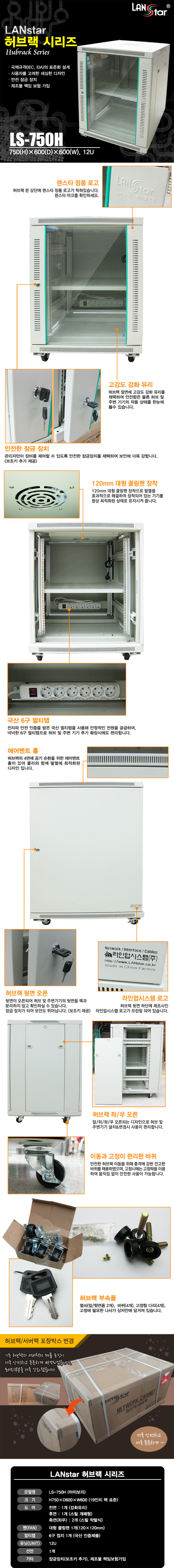 [128455]LANStar(·£½ºÅ¸) Çãºê·¢ 750mm (H750,D600,W600/12U) ¾ÆÀ̺¸¸® [LS-750H]