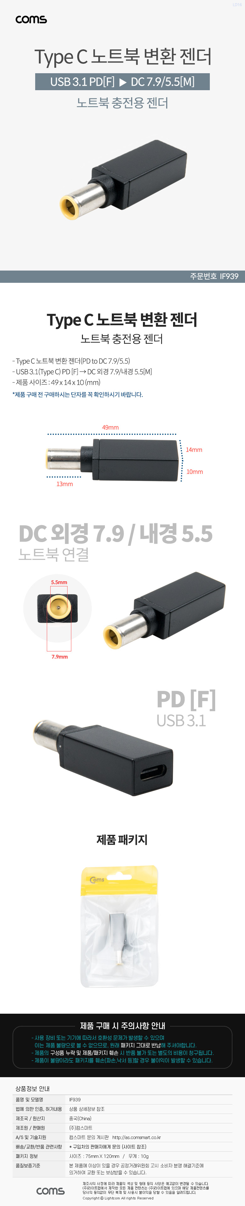 [301374]Coms(ÄĽº) USB 3.1(Type C) ³ëÆ®ºÏ Á¨´õ(PD to DC 7.9/5.5), º¯È¯, Short [IF939]