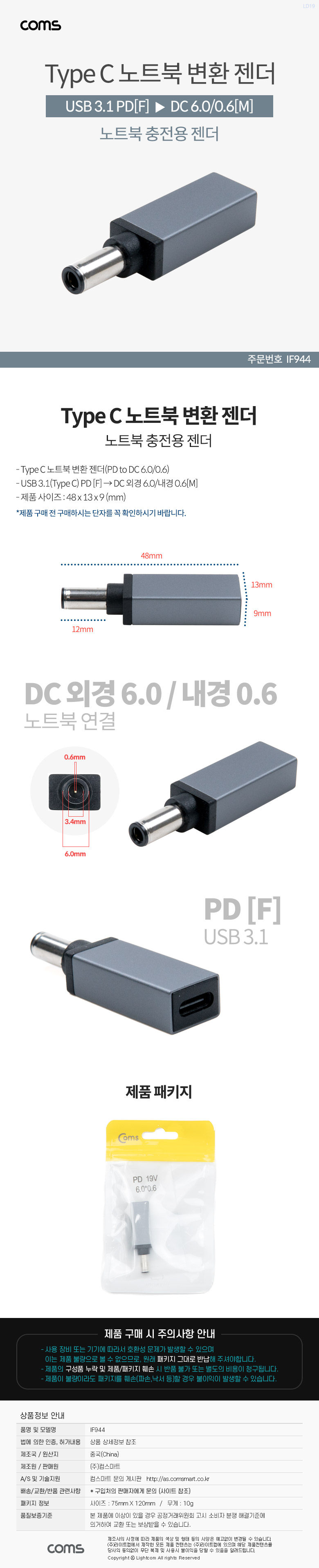 [301379]Coms(ÄĽº) USB 3.1(Type C) ³ëÆ®ºÏ Á¨´õ(PD to DC 6.0/0.6), º¯È¯, Short [IF944]
