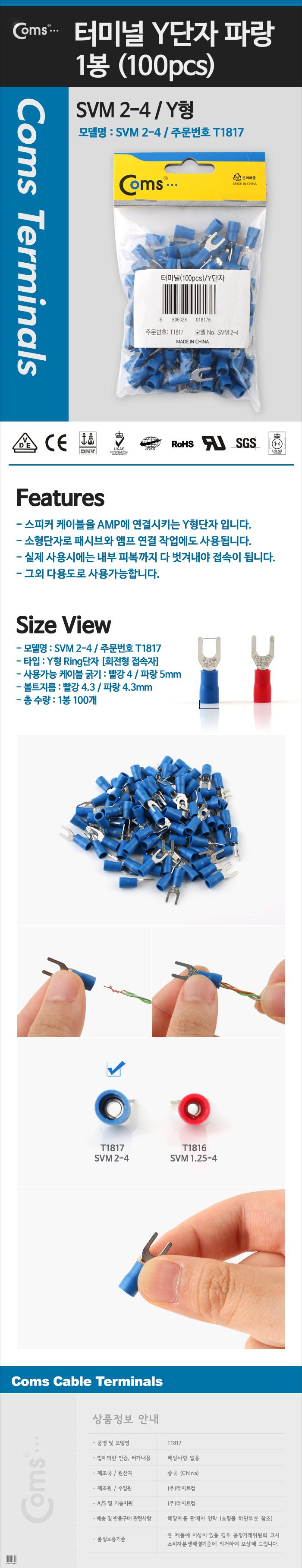 [157476]Coms(ÄĽº) Å͹̳ÎÄ¿³ØÅÍ(100pcs)/ Y´ÜÀÚ SVM 1.25-4 »¡° 4.3mm [T1816]