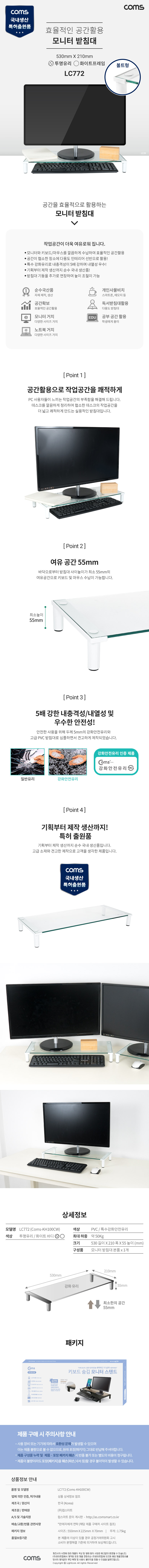 [300775]Coms(ÄĽº) ¸ð´ÏÅÍ ¹Þħ´ë/½ºÅĵå, ÈÀÌÆ®ÇÁ·¹ÀÓ Åõ¸íÀ¯¸® À¯¸®º¼Æ®Çü 1´Ü (530mm x 210mm) [LC772]