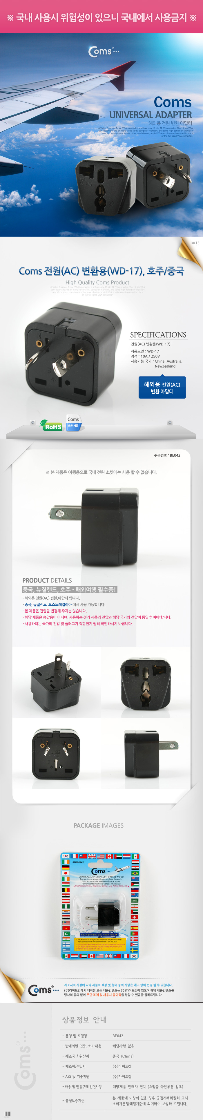 [149678]Coms(ÄĽº) Àü¿ø(AC) º¯È¯¿ë(WD-17) È£ÁÖ/Áß±¹ [BE042]