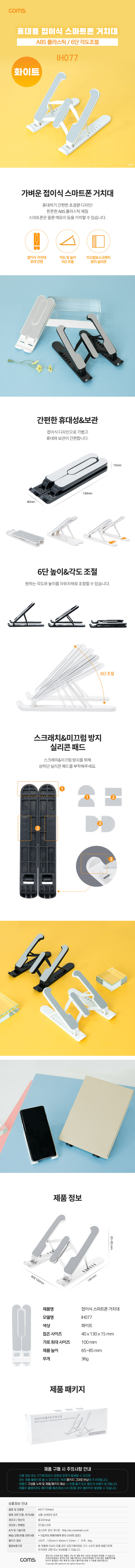 [303300]Coms(ÄĽº) Á¢ÀÌ½Ä ½º¸¶Æ®Æù °ÅÄ¡´ë, ½ºÅĵå, 6´ÜÁ¶Àý, Ź»ó¿ë, ÈÞ´ë¿ë, White(ÈÀÌÆ®) [IH077]