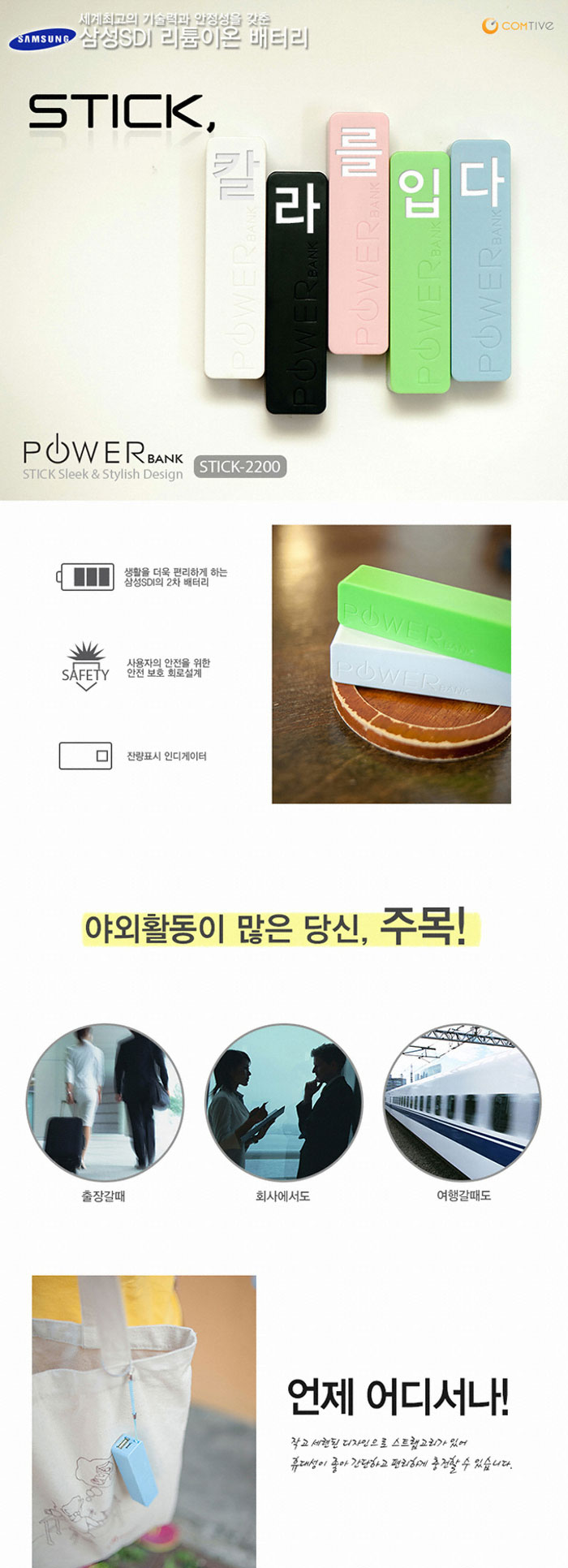 [ǰÀý][141585]ComTive(ÄÄÆ¼ºê) ÈÞ´ë¿ë ¹èÅ͸® 2200MAH / »ï¼ºSDI Á¤Ç° [STICK-2200 ºí·ç]