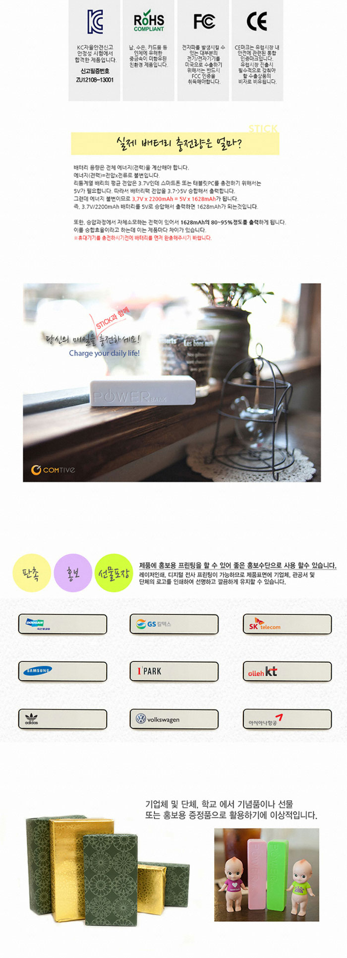 [ǰÀý][141583]ComTive(ÄÄÆ¼ºê) ÈÞ´ë¿ë ¹èÅ͸® 2200MAH / »ï¼ºSDI Á¤Ç° [STICK-2200 ÇÎÅ©]