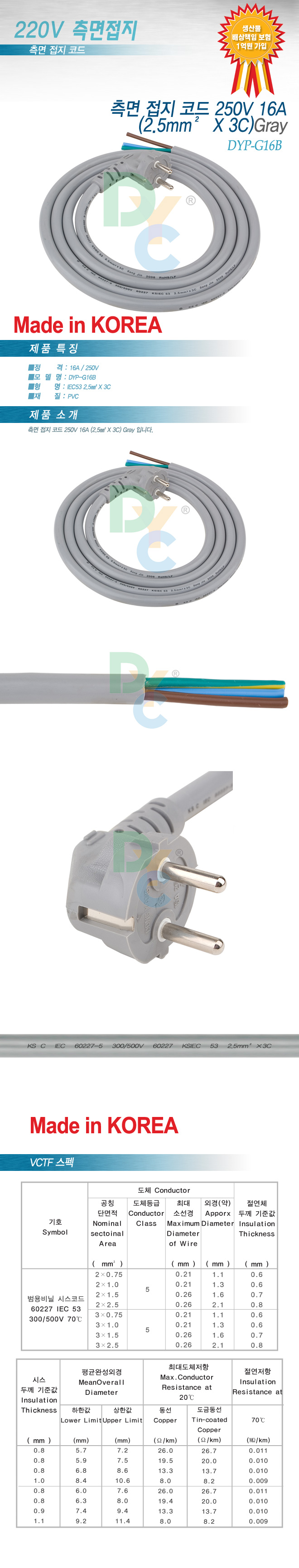 | ¡á DYC(µ¿¾ç) Ãø¸é Á¢Áö ÄÚµåÄÉÀ̺í 250V 16A´Â ´Ù¾çÇÑ »óǰÀÌ ÀÖ½À´Ï´Ù ¡á |