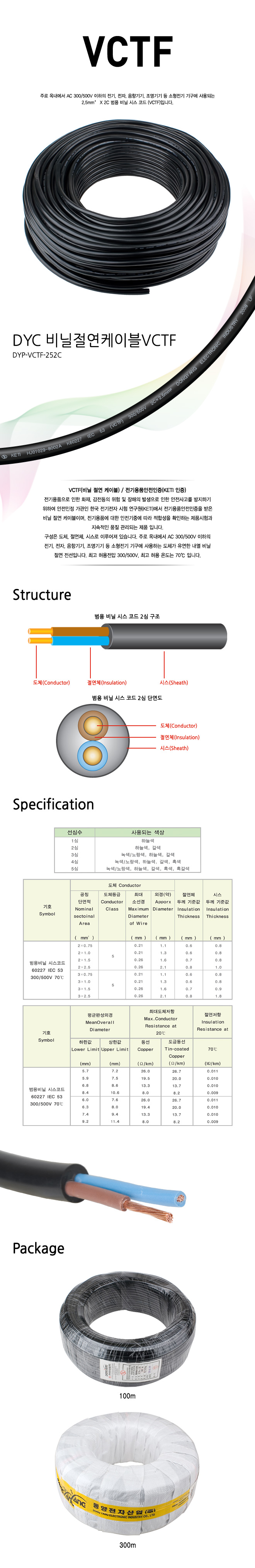 [116985]DYC(µ¿¾ç) 2.5mm©÷ X 2C ¹ü¿ë ºñ´Ò ½Ã½º ÄÚµå ÄÉÀ̺í (VCTF) ±¹»ê[MADE IN KOREA] 100¹ÌÅÍ(100m) [DYP-VCTF-252C]