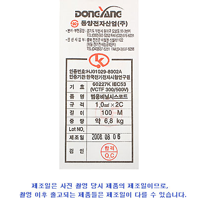 [116967]DYC(µ¿¾ç) 1.0mm©÷ X 2C ¹ü¿ë ºñ´Ò ½Ã½º ÄÚµå ÄÉÀ̺í (VCTF) ±¹»ê[MADE IN KOREA] 100¹ÌÅÍ(100m) [DYP-VCTF-102C]
