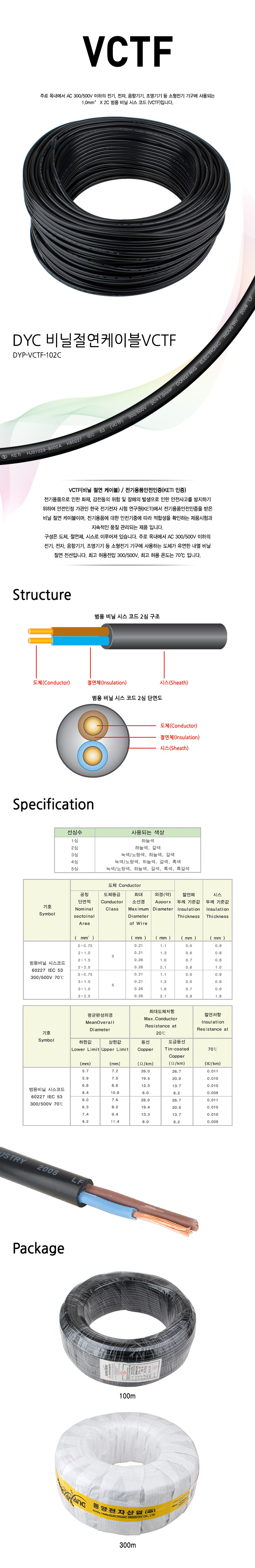 [116985]DYC(µ¿¾ç) 2.5mm©÷ X 2C ¹ü¿ë ºñ´Ò ½Ã½º ÄÚµå ÄÉÀ̺í (VCTF) ±¹»ê[MADE IN KOREA] 100¹ÌÅÍ(100m) [DYP-VCTF-252C]