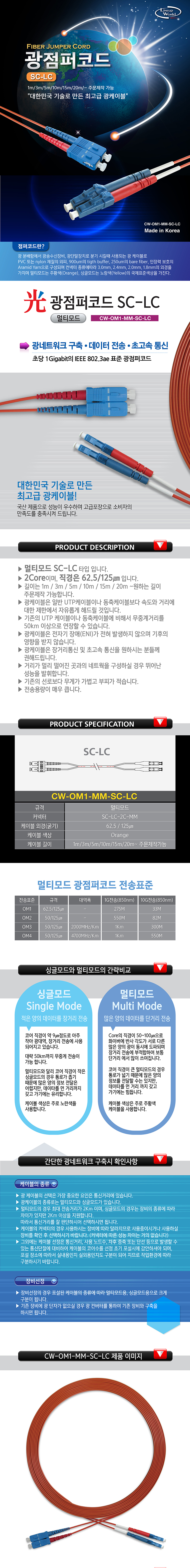 [159464]CableWorld(ÄÉÀ̺í¿ùµå) ¡ÜÁÖ¹®Á¦ÀÛ¡Ü ±¤Á¡ÆÛÄÚµå ¸ÖÆ¼¸ðµå ÄÉÀ̺í [LC-SC-2C-MM(OM1 1G)] 1¹ÌÅÍ(1m)