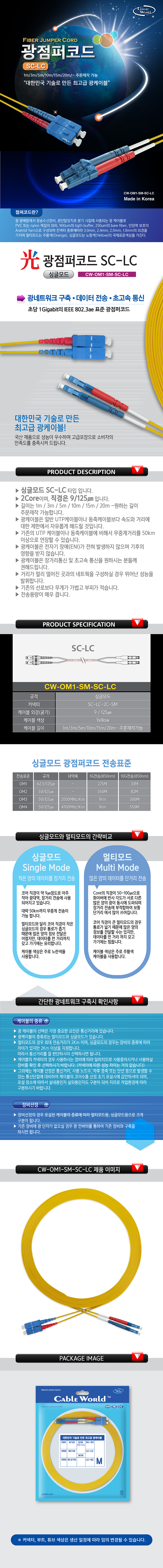 [159470]CableWorld(ÄÉÀ̺í¿ùµå) ¡ÜÁÖ¹®Á¦ÀÛ¡Ü ±¤Á¡ÆÛÄÚµå ½Ì±Û¸ðµå ÄÉÀ̺í [LC-SC-2C-SM] 1¹ÌÅÍ(1m)