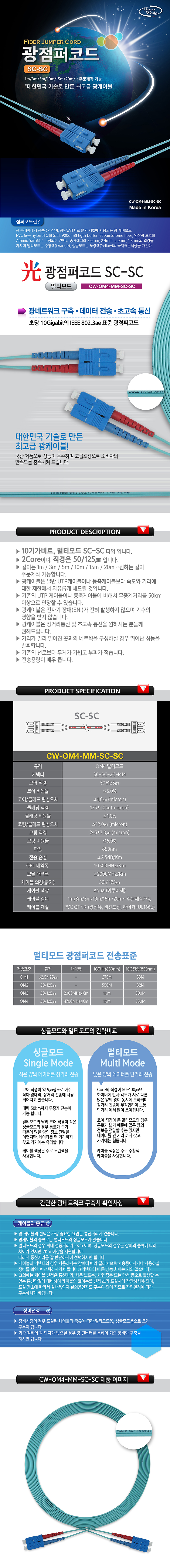 [159480]CableWorld(ÄÉÀ̺í¿ùµå) ¡ÜÁÖ¹®Á¦ÀÛ¡Ü ±¤Á¡ÆÛÄÚµå ¸ÖÆ¼¸ðµå ÄÉÀ̺í [SC-SC-2C-MM(OM4 10G)] 1¹ÌÅÍ(1m)