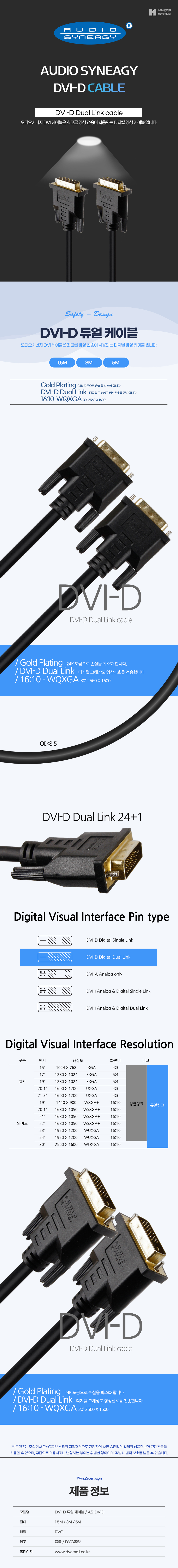 | ¡á AudioSynergy(¿Àµð¿À½Ã³ÊÁö) ÃÖ°í±ÞÇü DVI-D Dual Link ÄÉÀ̺íÀº 1.5m/3m°¡ ÀÖ½À´Ï´Ù ¡á |