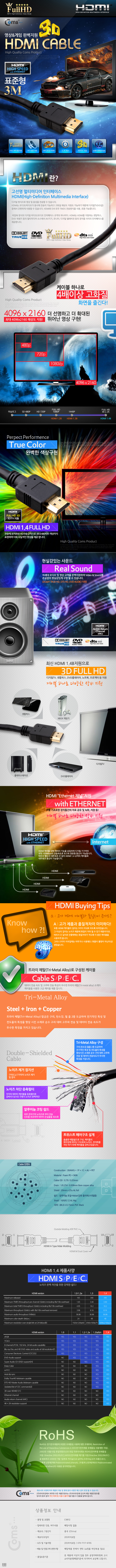 | ¡á Coms(ÄĽº) HDMI Ver 1.4 ÄÉÀ̺í Ç¥ÁØÇüÀº 0.5m~30m±îÁö ÀÖ½À´Ï´Ù ¡á |