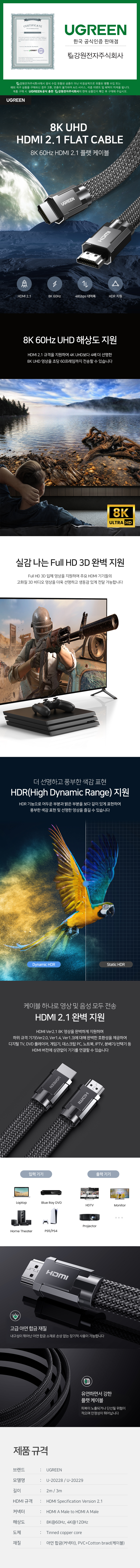 Ugreen, À¯±×¸°, HD145, U-20229, HDMI2.1, HDMI2.0, HDMI, Èåµå¹Ì, 8K, 8K60Hz, 4K, 4K120Hz, 48Gbps, UHD, ÄÉÀ̺í