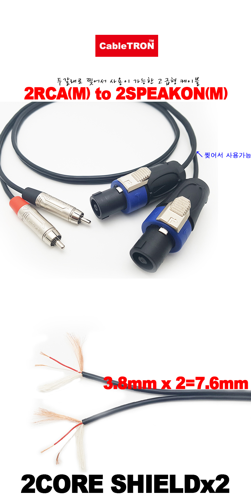 [170138]CableTRON(ÄÉÀÌºíÆ®·Ð) 2RCA(¼ö) to 2½ºÇÇÄÜ ÄÉÀ̺í 90¹ÌÅÍ(90m) [CCT-RYX]