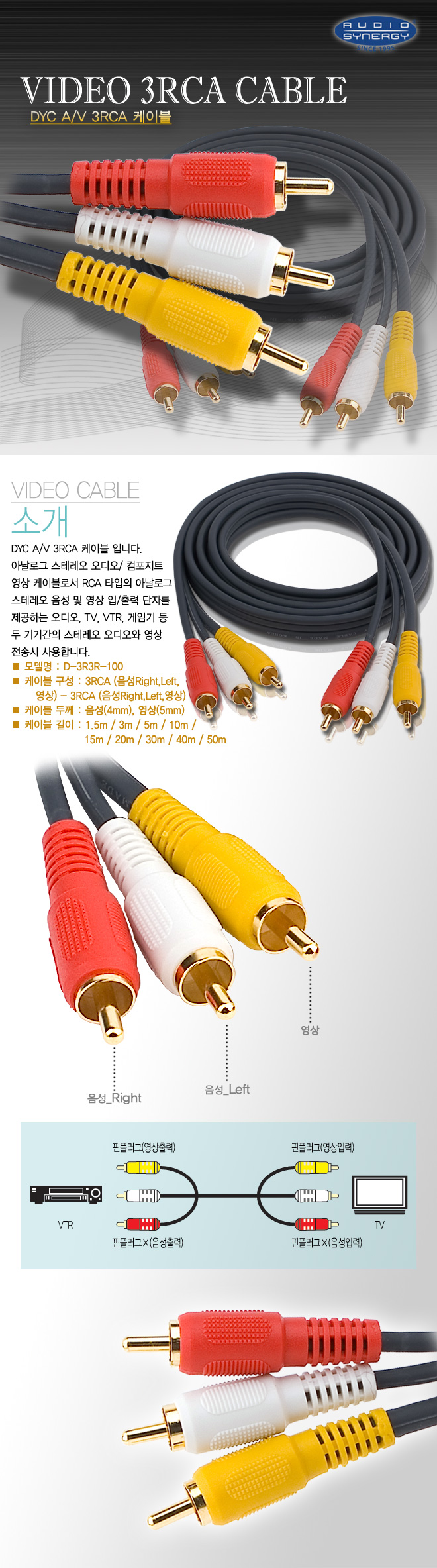 3RCA (À½¼º Left, À½¼º Right, ¿µ»óÀ¸·Î 3°³ ´ÜÀÚ) / µÎ²² : À½¼º(4mm), ¿µ»ó(5mm)