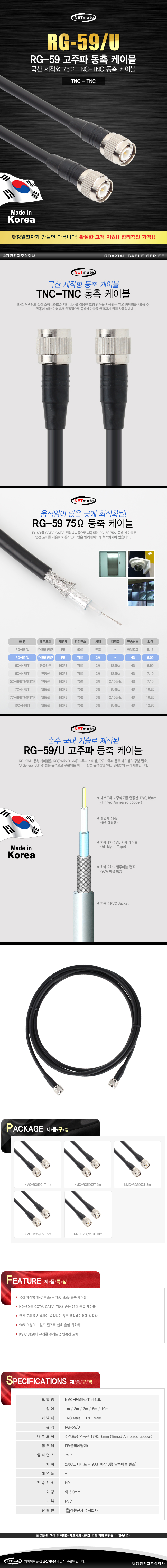 ±¹»ê Á¦ÀÛÇü RG-59 TNC-TNC µ¿Ãà ÄÉÀ̺í / HD-SDI±Þ CCTV, CATV, À§¼º¹æ¼Û¿ë 75§Ù µ¿Ãà ÄÉÀ̺í