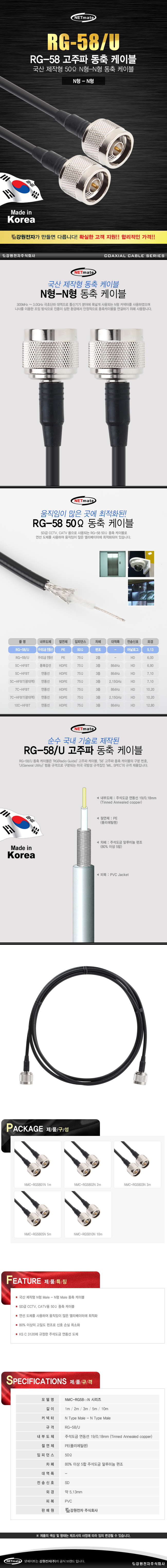 [165882]NETmate(³Ý¸ÞÀÌÆ®) RG-58 NÇü-NÇü °íÁÖÆÄ µ¿Ãà ÄÉÀ̺í(ÁÖ¼®µµ±Ý ¿¬µ¿¼±/5ÇÕ/50¥Ø) 5¹ÌÅÍ(5m) [NMC-RG5805N]