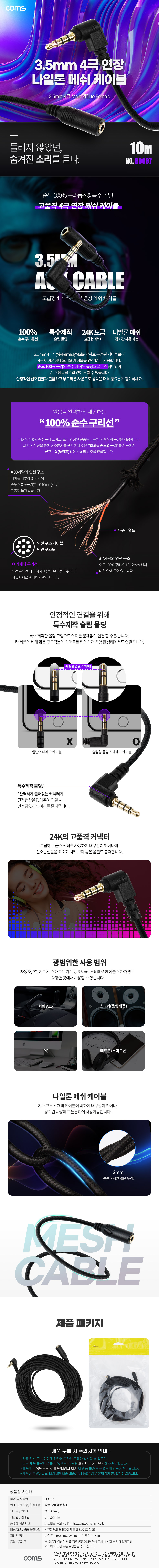 [303097]Coms(ÄĽº) 4±Ø ¿¬Àå ¸Þ½¬ ÄÉÀ̺í 3.5mm 4±Ø M ²ªÀÓ to F AUX Stereo, ¼ø¼ö ¹«»ê¼Òµ¿¼± »ç¿ë,½ºÅ×·¹¿À ¿Àµð¿À À̾îÆù ¿¬Àå 10¹ÌÅÍ(10m) [BD067]