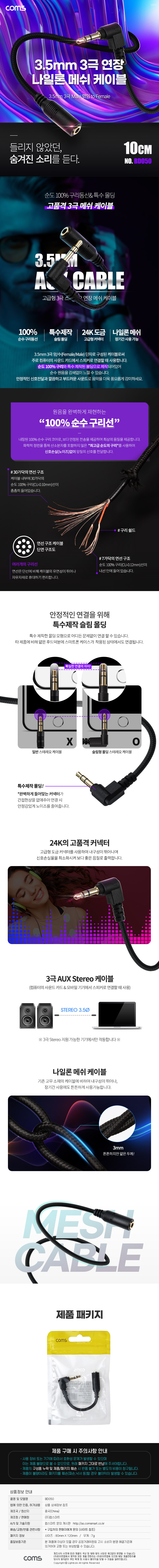 [ǰÀý][303253]Coms(ÄĽº) 3±Ø ¿¬Àå ¸Þ½¬ ÄÉÀ̺í 3.5mm 3±Ø ¼ö(M) ²ªÀÓ to F AUX ½ºÅ×·¹¿À ¿¬Àå, ¼ø¼ö ¹«»ê¼Òµ¿¼± »ç¿ë 0.6¹ÌÅÍ(0.6m) [BD052]