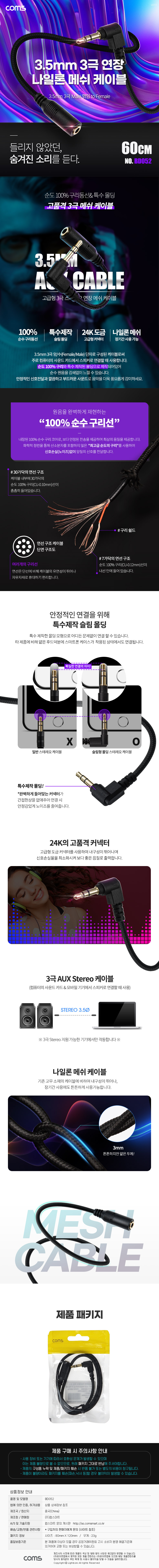 [ǰÀý][303253]Coms(ÄĽº) 3±Ø ¿¬Àå ¸Þ½¬ ÄÉÀ̺í 3.5mm 3±Ø ¼ö(M) ²ªÀÓ to F AUX ½ºÅ×·¹¿À ¿¬Àå, ¼ø¼ö ¹«»ê¼Òµ¿¼± »ç¿ë 0.6¹ÌÅÍ(0.6m) [BD052]