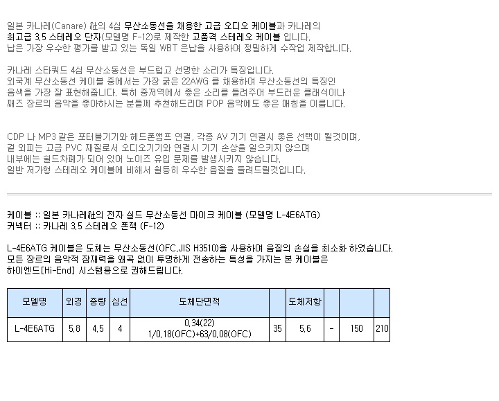 | ¡á CANARE(Ä«³ª·¹) 3.5 ½ºÅ×·¹¿À (¾Ï¼ö)¿¬Àå ÄÉÀ̺í L-4E6ATG´Â 0.5m~10m±îÁö ÀÖ½À´Ï´Ù ¡á |