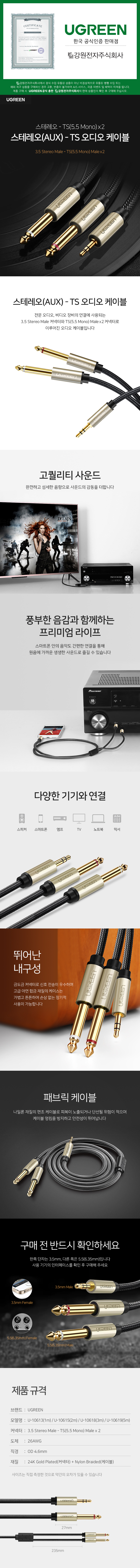 Ugreen, À¯±×¸°, AV126, U-10615, TS, 5.5¸ð³ë, 3.5½ºÅ×·¹¿À, ¿Àµð¿ÀÄÉÀ̺í, ÄÉÀ̺í, 6.5, 6.35, YÄÉÀ̺í