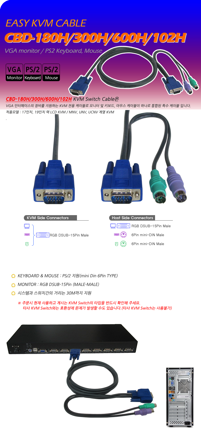| ¡á ½Ã½º¶óÀÎ Easy KVM Cable (PS/2)Àº 1.8m/3m/6m/10m/15m°¡ ÀÖ½À´Ï´Ù ¡á |