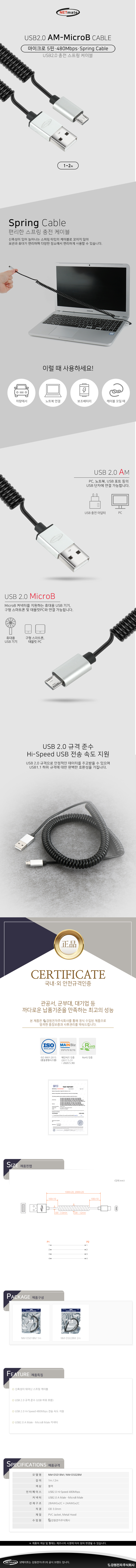 [296177]NETmate(³Ý¸ÞÀÌÆ®) USB 2.0 A(M)-¸¶ÀÌÅ©·Î 5ÇÉ(M) ½ºÇÁ¸µ ÄÉÀ̺í 2¹ÌÅÍ(2m) [NM-DS02BM]