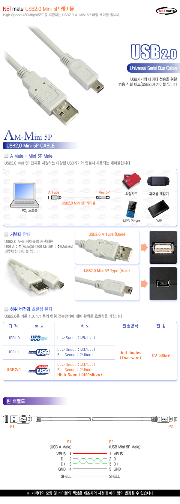 | ¡á ³Ý¸ÞÀÌÆ® Mini 5P(SONY) USB2.0 ÄÉÀ̺íÀº 0.15m ~ 10m±îÁö ÀÖ½À´Ï´Ù ¡á |