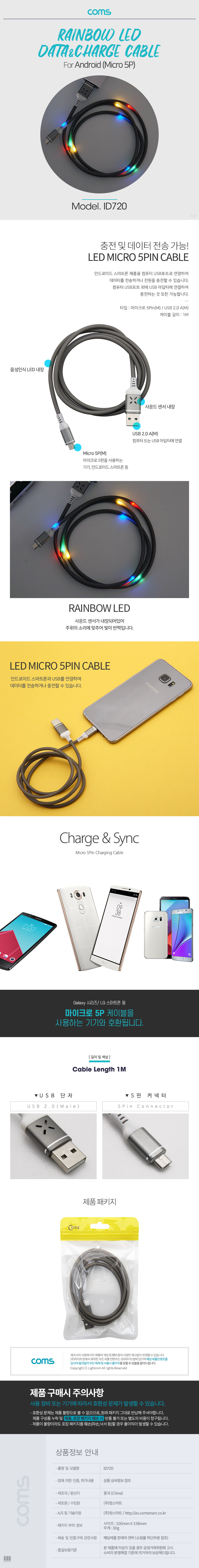 [287886]Coms(ÄĽº) ¾Èµå·ÎÀ̵å ÄÉÀ̺í/ Micro 5Pin / (»ç¿îµå ¼¾¼) 1¹ÌÅÍ(1m) / White / Rose Gold [ID719]