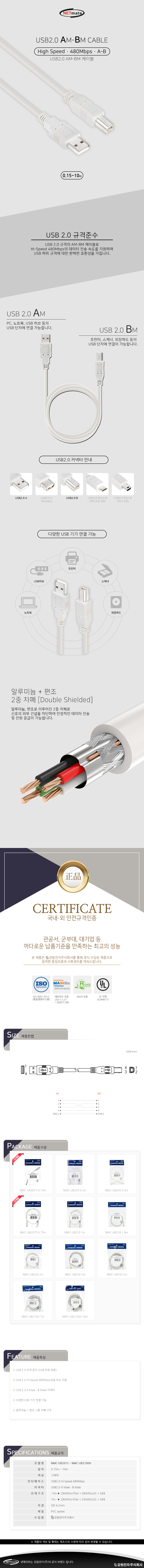 | ¡á NETmate(³Ý¸ÞÀÌÆ®) USB 2.0 ÄÉÀ̺í ABŸÀÔÀº 0.15m~10m±îÁö ÀÖ½À´Ï´Ù ¡á |